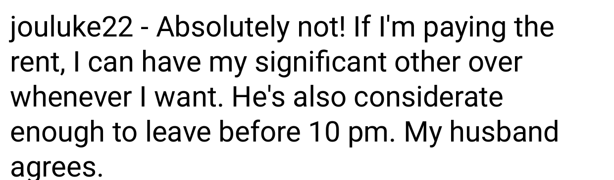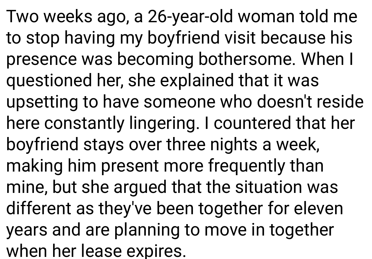 When you share a living space with roommates, maintaining fairness is essential, particularly regarding common areas and regulations that concern all residents. The original poster’s scenario highlights a more fundamental problem concerning respect and equal treatment; if one roommate is permitted to have their significant other visit, then it’s only reasonable that everyone else has the same privilege.