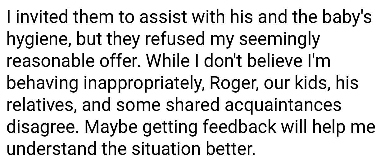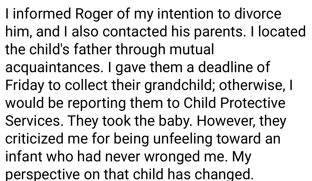Upon contacting the child’s maternal grandparents, she was met with disapproval for her perceived lack of warmth towards the baby. This was despite her not feeling responsible for a child born from her husband’s infidelity. With her own children also expressing their opinions, she now questions whether her response was overly severe.