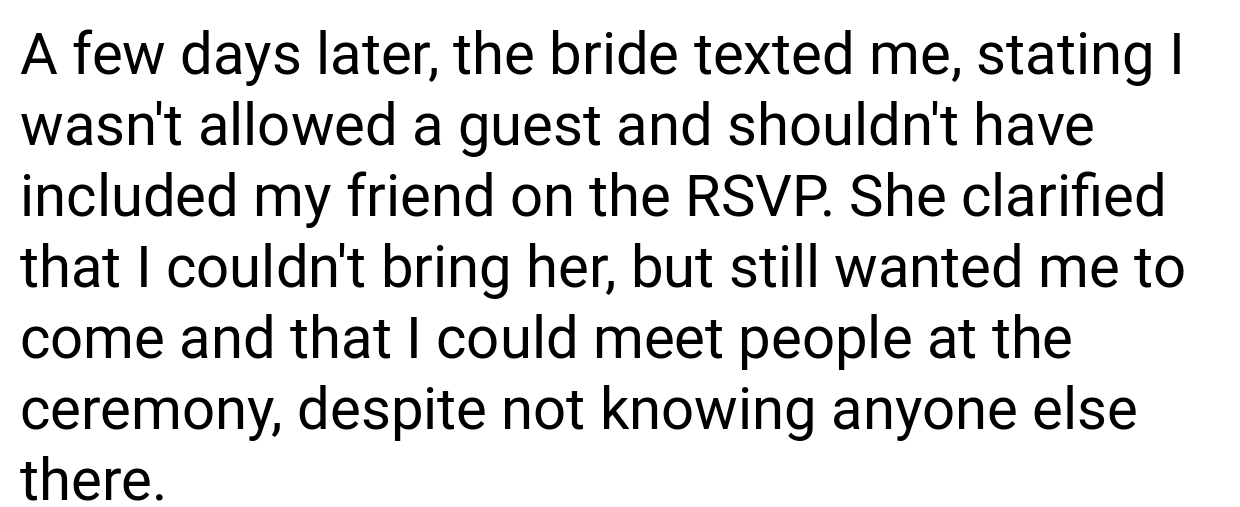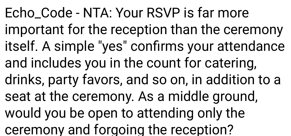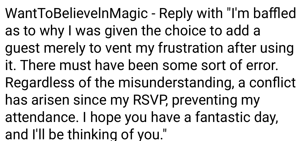 ‘AITA If I change my Wedding RSVP after having a plus one rescinded?’