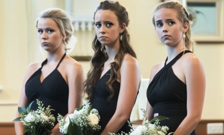 Her eyes darted from one bridesmaid to the next, taking in the dark silhouettes, the somber energy, and the whispers rippling through the guests.