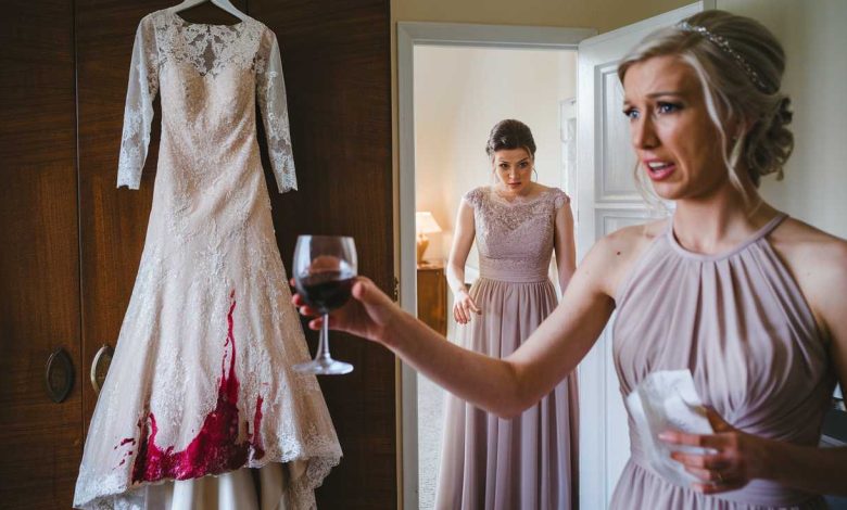 ‘ AITA for going “bridezilla” after my bridesmaid spilled wine on my wedding dress?’