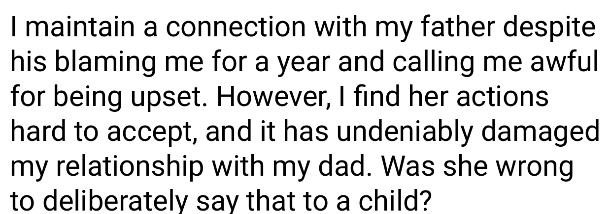 ‘ Aitah for my reaction to what my stepmother did to my son?’