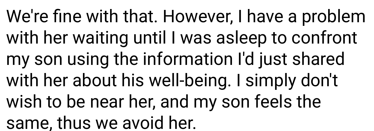 Another commenter stated, “Prioritize your son’s emotional health above all else. Although it may cause temporary pain, confronting a harmful person like Jill is crucial. You acted as any loving parent would.”