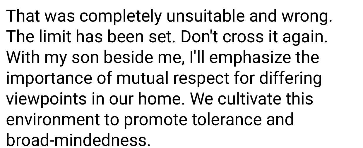 I stepped in, sending my son to his room, and we departed the following morning. Now, my father and Jill are saying that I’m in the wrong for being “too protective” of my son. Was my reaction inappropriate?