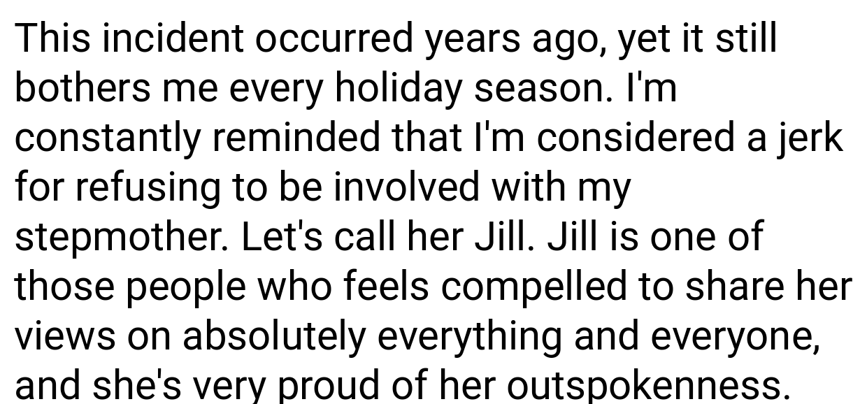 Family conflicts can have long-lasting effects, particularly when a child’s emotions are involved. As a 24-year-old female, I’m still grappling with something that took place four years prior, and it continues to trouble me every holiday season. My stepmother, whom we’ll refer to as Jill, has a history of being quite vocal, frequently flaunting her views on various subjects.
