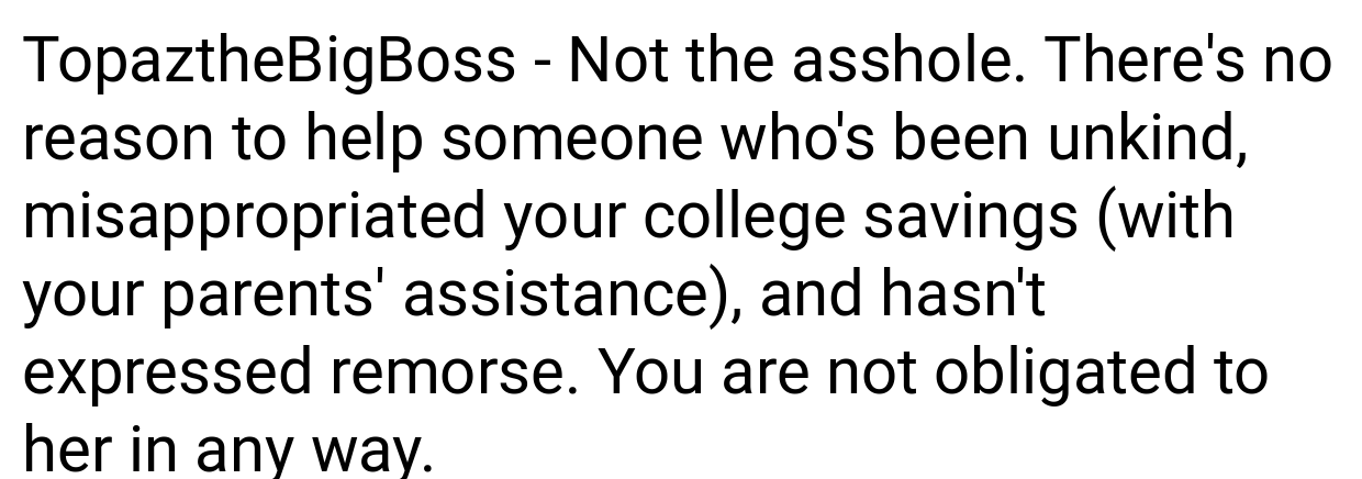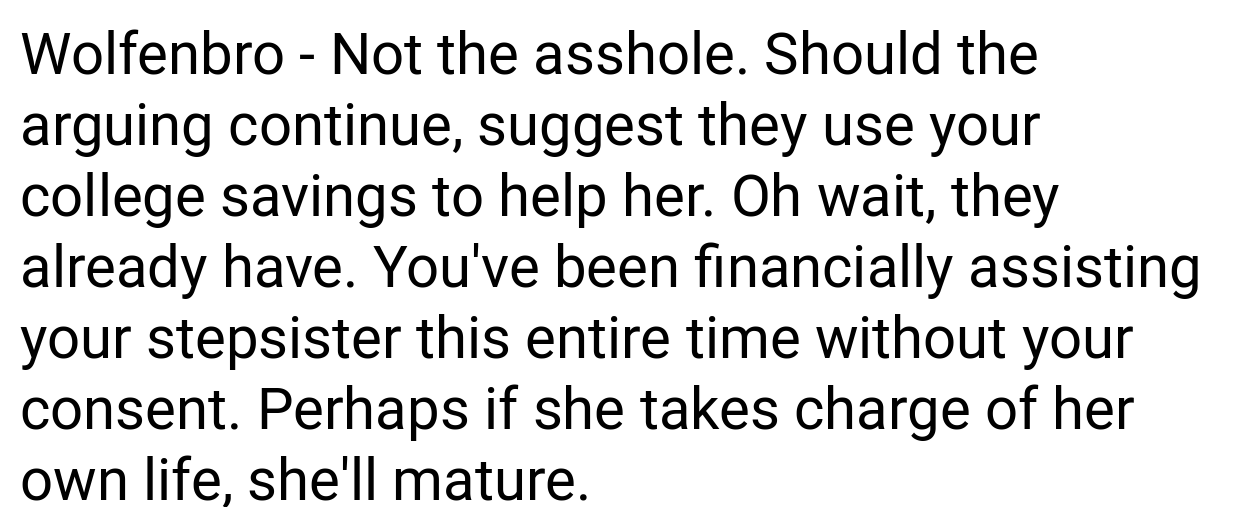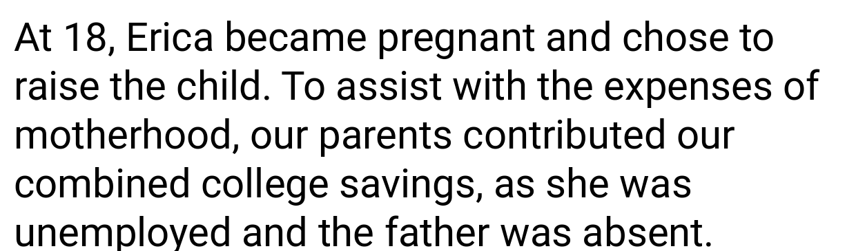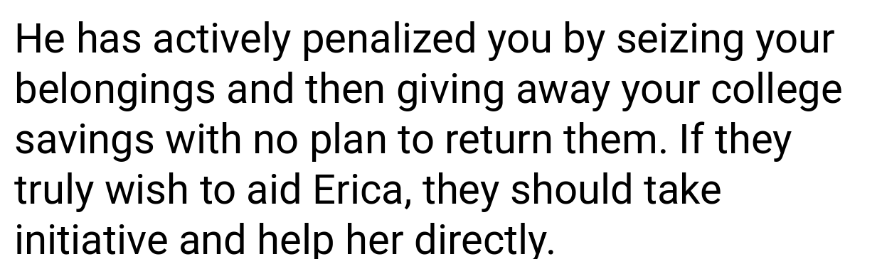 4. Let Them Face Their Own Consequences: OP is not responsible for cleaning up the mess they created by handing her college fund to Erica years ago.