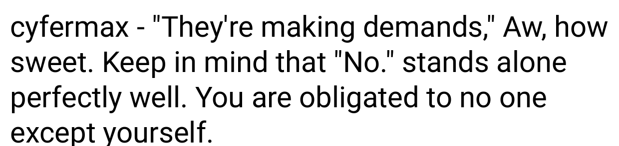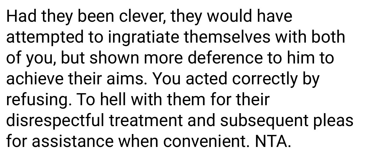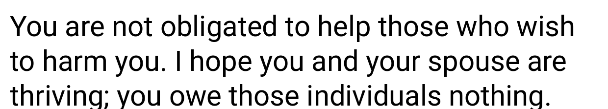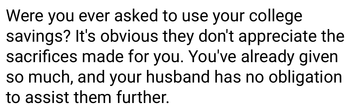 3. Remind Them of Their Own Choices: If they bring up her husband’s generosity toward his sister, OP can respond: “He helps his sister because she has always treated him with love and respect. Erica has never done that for me.”