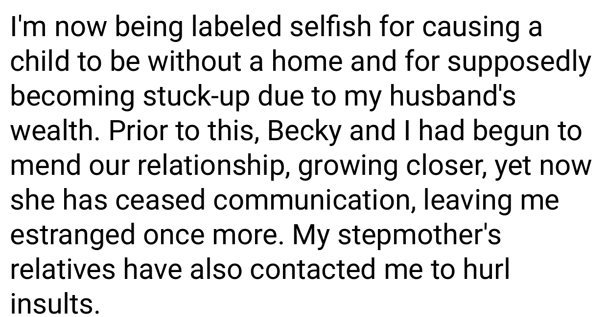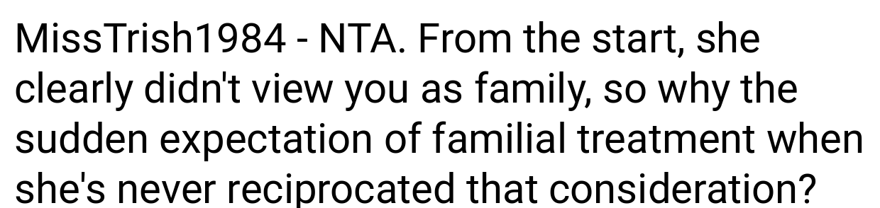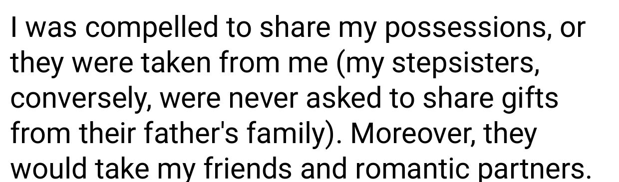 OP’s stepsister has already taken everything from her, and yet she still anticipates receiving even more, showing no regret whatsoever.
