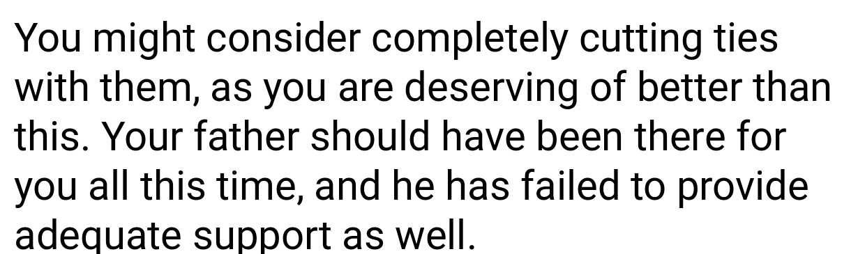 2. Go No Contact if Needed: If her dad and stepmother keep pushing, OP should consider cutting them off to protect her mental health.