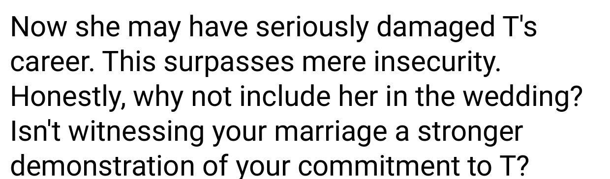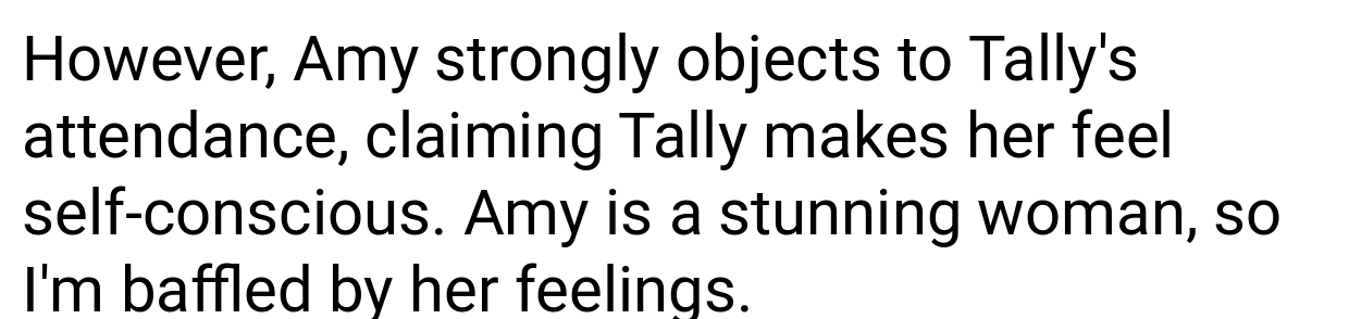 Instead of communicating her feelings of vulnerability to OP like an adult, Amy chose to belittle him and damage his professional life. She didn’t simply voice her unease; she actively sought him out at his job, intentionally ostracized Tally with maximum cruelty, and fueled a campaign to ruin his reputation. That transcends mere insecurity; it’s pure spite.