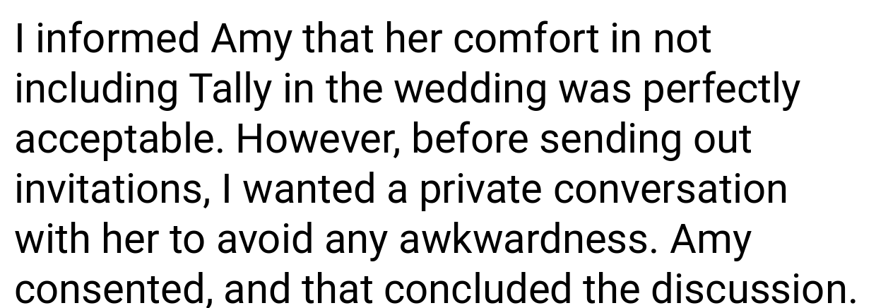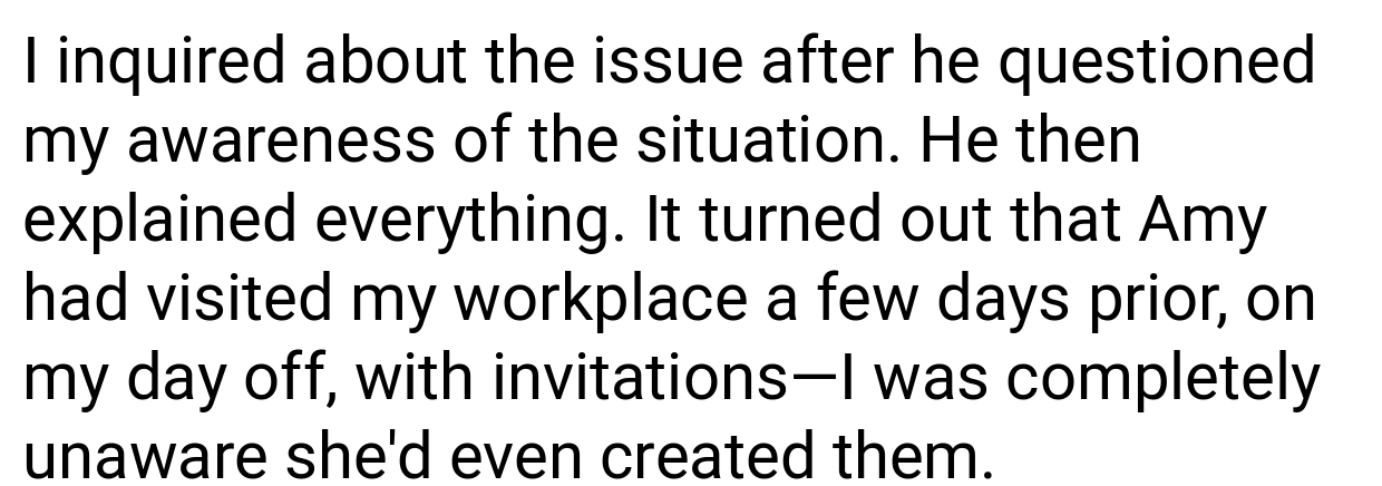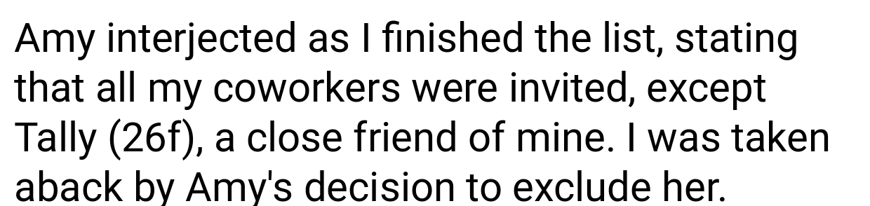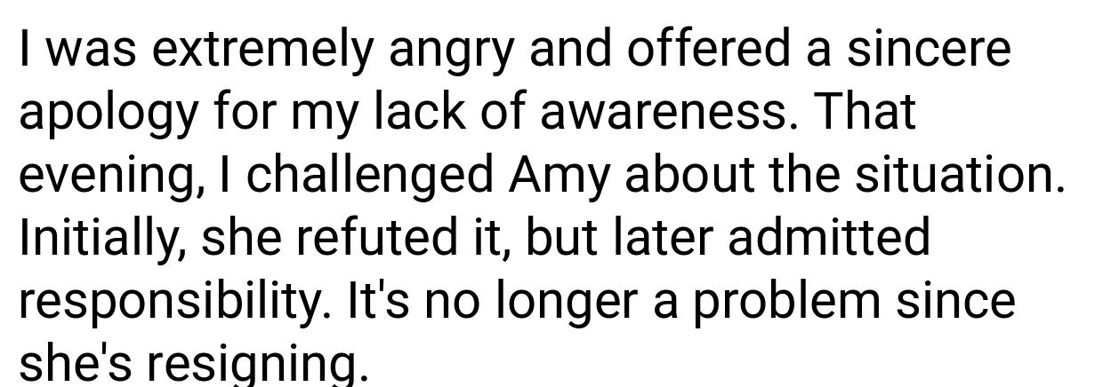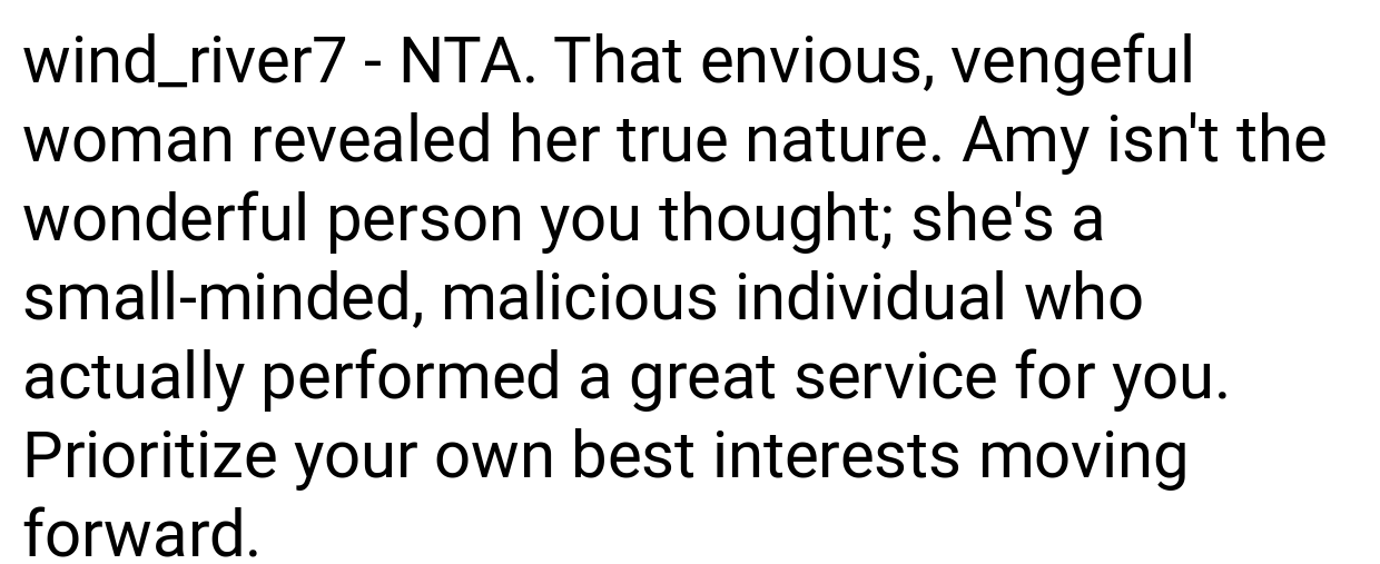 Amy’s self-centered behavior didn’t only have consequences for Tally, it also had the potential to jeopardize the original poster’s professional life.