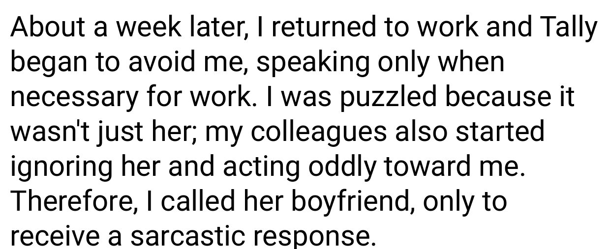 Amy didn’t just attack OP’s friendship with Tally—she made sure his entire office turned against her. This kind of behavior is an early sign of controlling relationships. According to Dr. Evan Stark, a leading expert on coercive control, “isolation is one of the most powerful tools used in emotionally abusive relationships. The goal is to weaken their partner’s support system so they rely solely on the abuser.”