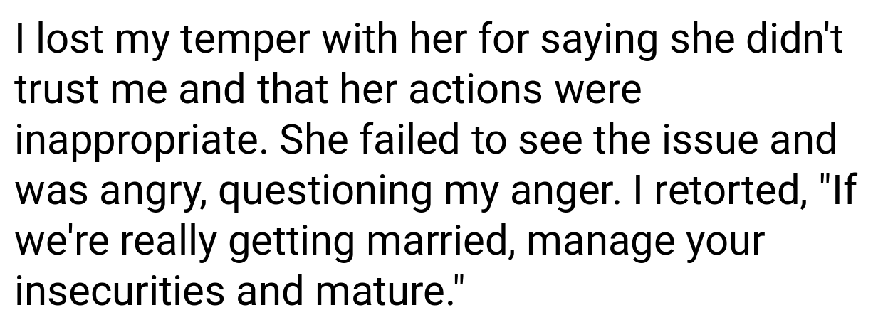 ‘AITA for telling my fiancee to get her insecurities in check and grow up after she humiliated my coworker?’