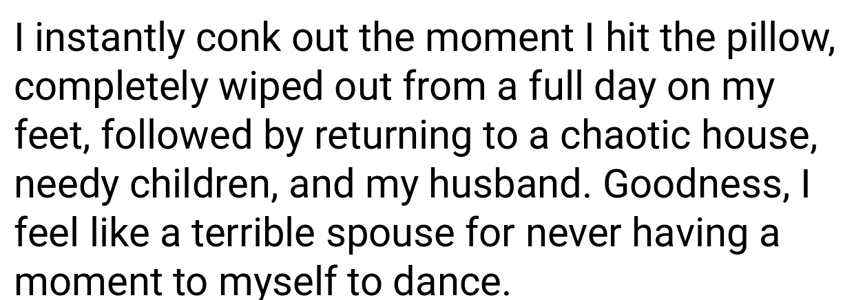 AITA for telling my husband exactly why I can’t dance every night when I get home from work?