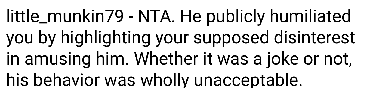 - Communication Over Comparison – If OP’s husband wanted more playfulness, he should have had a private, respectful conversation rather than making it a public spectacle.