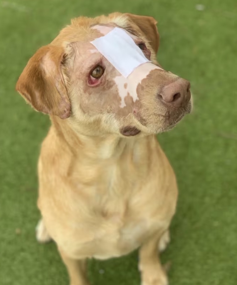 Thankfully, despite the shocking injury, Buddy doesn’t appear to have lost his eyesight. Tunica Humane Society says that doctors believed his eyes are still intact. Damage to his eye lids will be fixed surgically, and he will likely have some vision when he is healed.