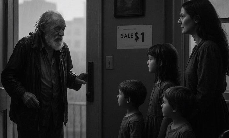 A mother of four welcomes a drenched elderly man into her home—and the very next day, she sells her house for just one dollar.