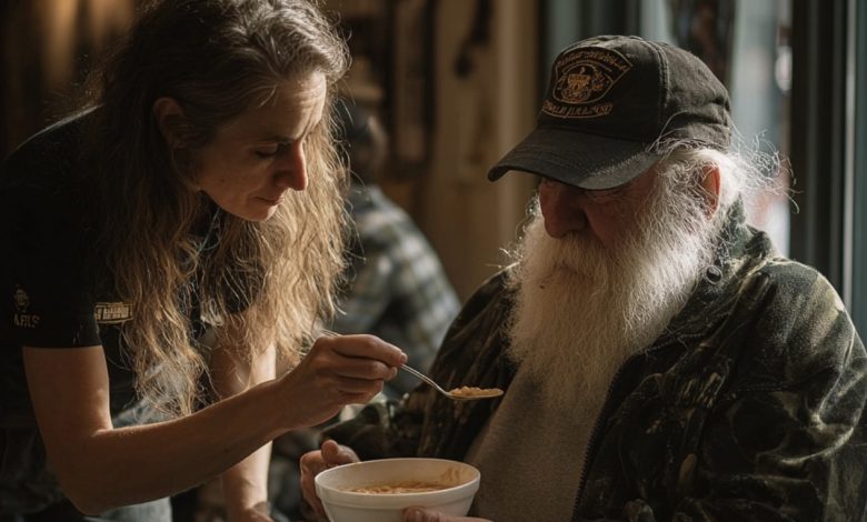 At first, I felt the weight of every eye in the diner. People stared in shock or disgust. Some pretended not to watch. But I paid no attention. All I saw was a proud man battling his own body. His jacket hung loose, his frame looked smaller than the first time I’d served him. Fresh bruises on his temple told me he’d fallen recently. And every bite I fed him was a small victory over humiliation.