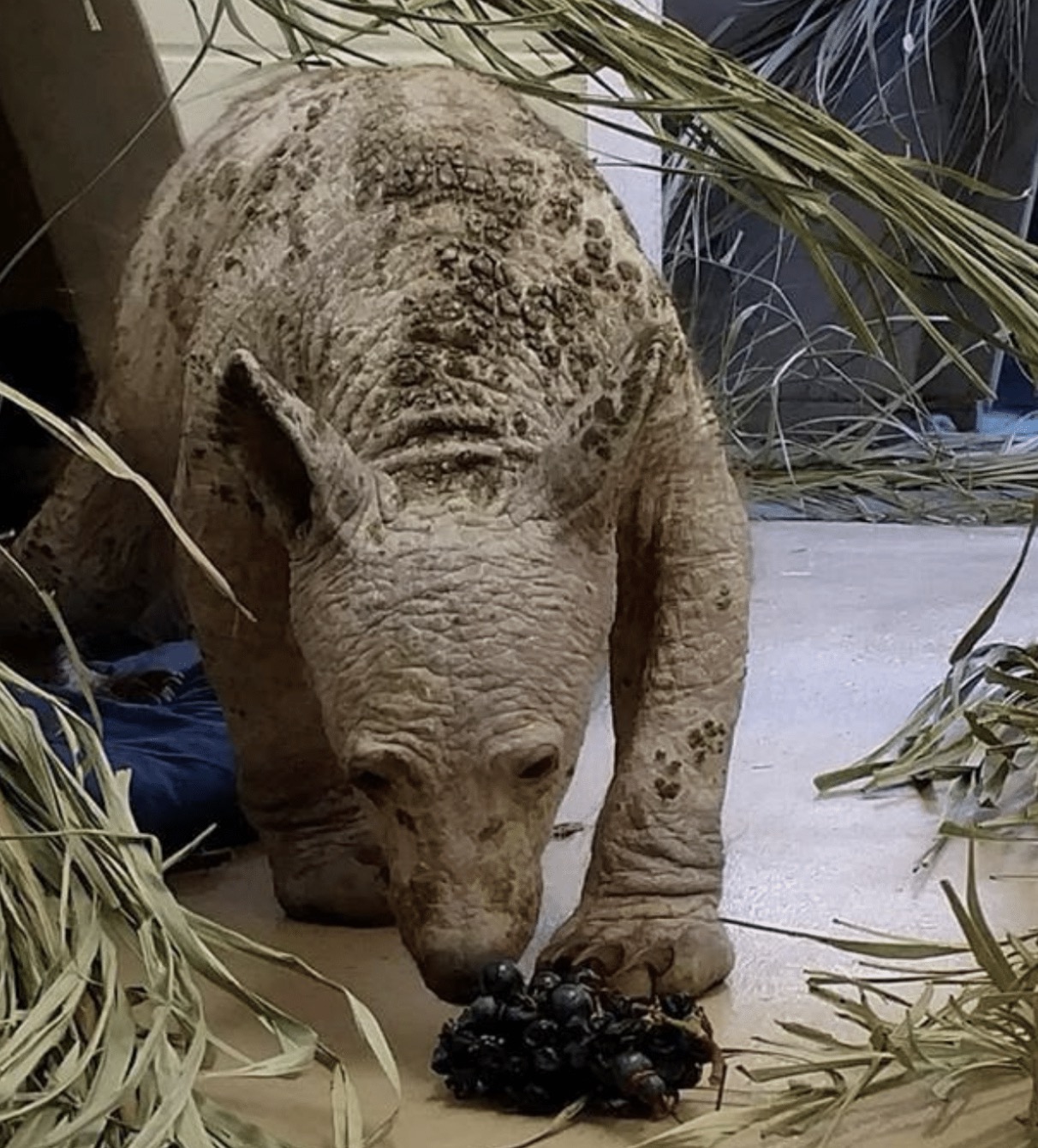 By early January, her caretakers noticed Eve would sometimes lift her head to look around when staff entered her stall. She even began to step toward her food dish on her own, eager for another helping. While she had not yet sprouted any fur, her appetite and alertness were hopeful signs.
