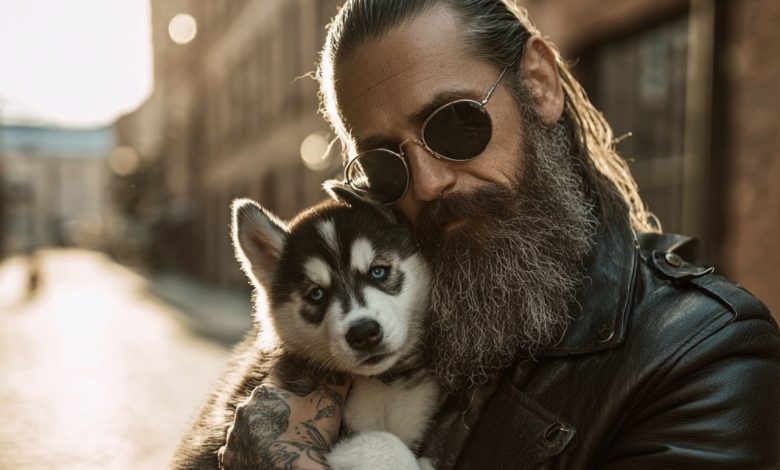 Twenty minutes later, I stood before a weathered shed surrounded by half-fixed motorcycles. Through the open door, I saw a man with a waist-length white beard gently coaching a golden retriever puppy to pick up a set of keys off the floor. The man’s hands were rough, covered in tattoos, but he handled the puppy like it was made of glass.