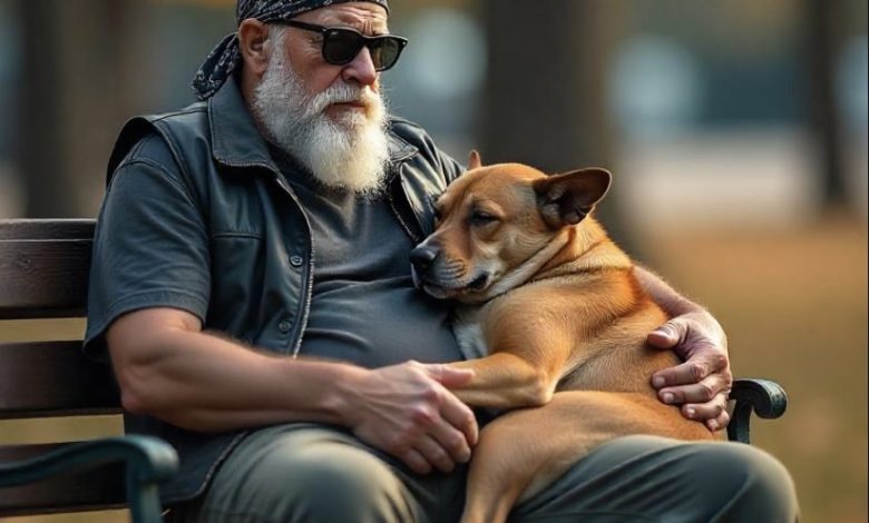 My name is Sarah Chen, and I was the new kindergarten aide at Riverside Elementary when I first saw him: a massive, bearded biker with his loyal dog, quiet as a shadow on the sidewalk. From the moment I met Tank, I understood why parents were worried. He was impossible to miss—six-foot-four, arms covered in tattoos, a leather vest heavy with patches from the “Road Warriors MC,” and a black Harley that gleamed like midnight metal. Every morning, he’d roll up on that bike at precisely 7:00, kill the engine, and plant himself on the bench right across from the kindergarten gate. He never spoke to anyone. He never stepped onto school grounds. He simply watched, notebook in hand, as each child arrived, his dog sitting loyally by his side.