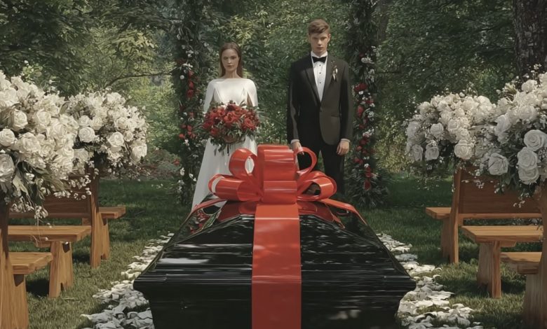 The coffin was polished so smoothly it reflected the treetops above, and on its lid was tied a giant red bow made of satin ribbon. No one spoke. The music cut off mid-note. The laughter drifted away. All at once, the guests’ smiles vanished, and the only thing to be heard was the soft, metallic echo of shoes over grass.