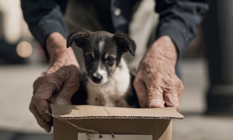 He hesitated, brow furrowed, as his arthritic knees protested when he bent over to peer inside. There, huddled against the soggy cardboard, was a trembling puppy—its fur as black and white as a newspaper print, its eyes enormous and desperate. A crumpled scrap of paper was taped to the box: “Take care of him!”
