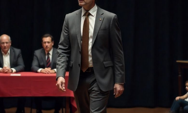 Seconds later, something shifted at the very back of the room. A man rose to his feet, alone. He was tall and older, wearing a plain gray suit. He didn’t smile or say a word. He just began to walk down the aisle toward the stage.