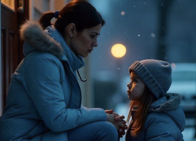 The porch light glowed weakly through the snow, and there she was — my little girl, standing by the door, wrapped in her thin coat. She wasn’t crying. She wasn’t moving. Just standing there, her breath a small white cloud.