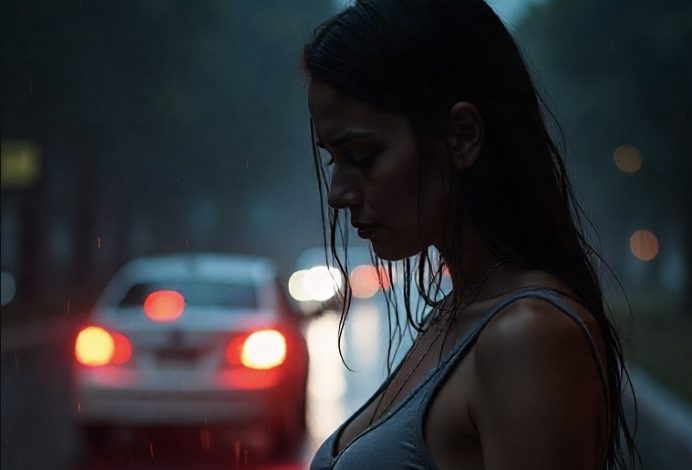 For a few long seconds, I just sat there, numb. I couldn’t move. I couldn’t breathe. The only sound was the relentless pounding of the rain against the metal roof. I waited, staring at the place where he’d disappeared, expecting him to come back—to realize what he’d done. But the road remained empty.