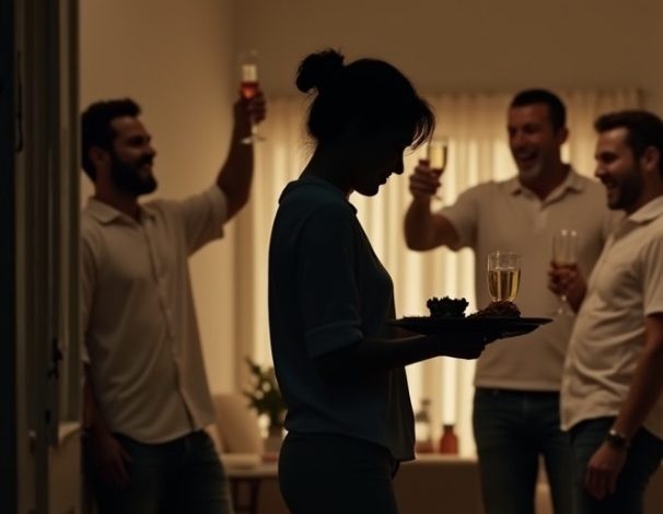 I set the tray down gently, even though my heart was pounding in my chest. They hadn’t noticed me yet. For half a minute, I just stood there, watching them celebrate his words. My husband—my partner of twelve years—looked proud, smiling as his friends encouraged him to talk more.