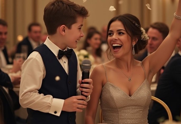 The room burst into laughter. My hands shook under the table as I forced a polite smile. But the laughter ended the moment my nine-year-old son, Noah, stood up, walked straight to the microphone, and said, “I know something about the bride.”