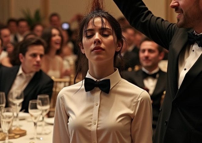 The sound of laughter echoed through the ballroom as brown liquid spilled down her uniform. The glass hit the floor with a sharp crack, followed by more laughter. They thought it was a harmless prank — something to make their night more entertaining. A nobody waitress, soaked and embarrassed, standing still while the city’s elite looked on.