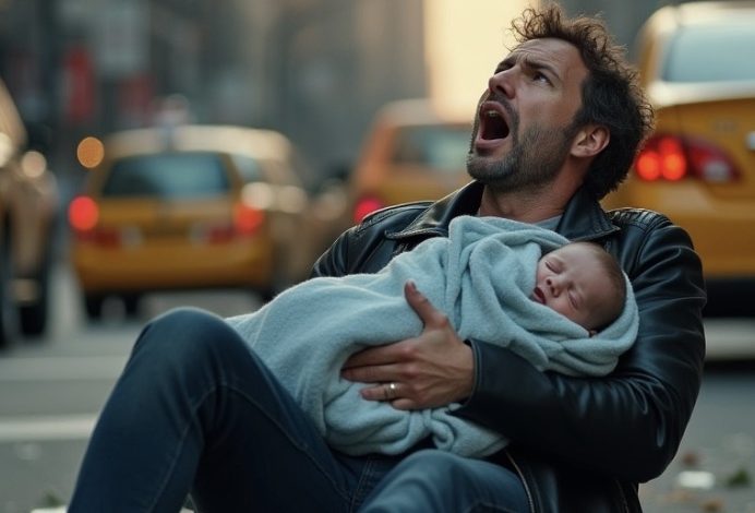 The weight hit me like a hammer. The baby’s body landed against my chest, and I crumpled backward onto the sidewalk, curling around the small form as tightly as I could. Pain shot through my ribs, but I didn’t care. The world went silent for a heartbeat—then I heard it. A soft, fragile cry. The baby was alive.