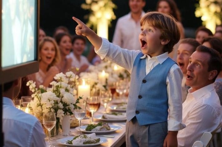 The surrounding conversations softened. Guests leaned in slightly, pretending not to stare while absolutely staring.