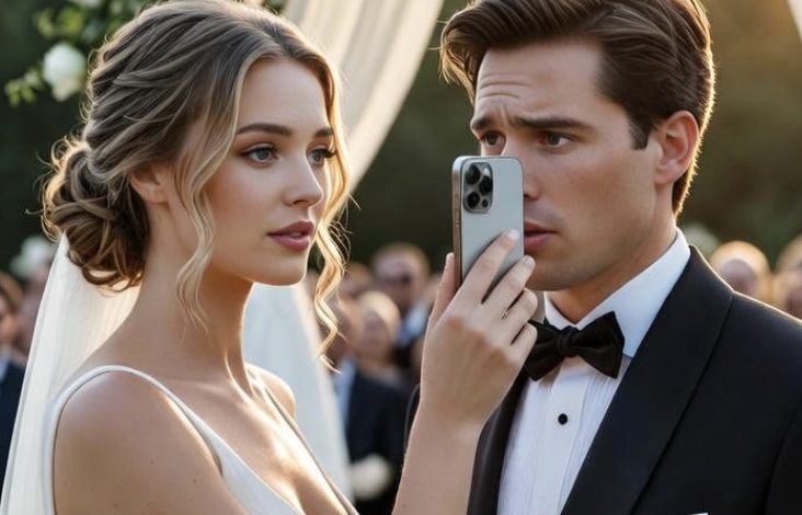 Our wedding promises turned into something terrifying the moment his ex pushed her way to the altar, her voice sharp with bitterness: “He messaged me last night saying he still loves me! Don’t marry him!” People in the audience gasped in shock. My husband shouted back, his forehead shining with sweat, “That’s not true! She’s out of her mind!” Piper folded her arms and smiled in a poisonous, confident way. “Then check his phone,” she shot back. I didn’t pause. I reached into the hidden folds of my dress, took out his phone, pressed it into his shaking hand, and whispered, “I already looked.” His face went ghost-white as he stared at the screen.