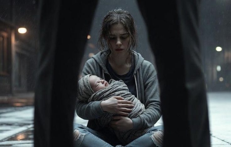My boyfriend disappeared, and my own family cut me off. I ended up sitting on an icy sidewalk, holding my three-week-old baby girl as everything around me faded to darkness. The last image burned into my mind was a pair of polished black dress shoes stopping right in front of me. When I finally opened my eyes again, I wasn’t in a hospital bed. I was lying on sheets that cost more than anything I had ever owned. I tried to escape, but a man stepped into the doorway, blocking my path. “You’re not going anywhere,” he said quietly, holding a single sheet of paper between his fingers…