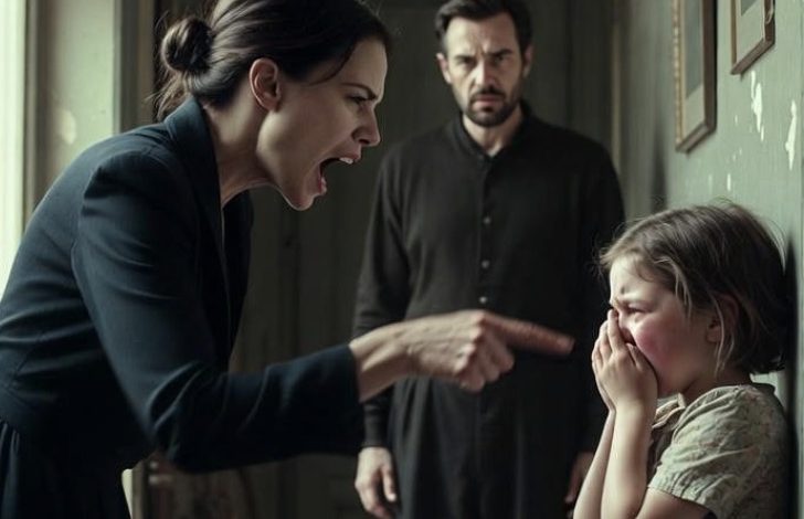 Standing over her—face tight with rage, posture rigid—was my wife, Elena. Her breath came in quick, angry bursts, and her raised hand hovered in the air like a weapon.