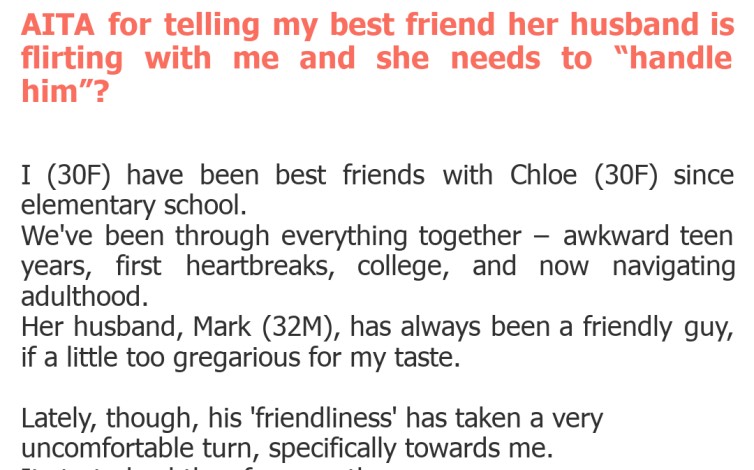 "AITA for telling my best friend her husband is flirting with me and she needs to “handle him”?"