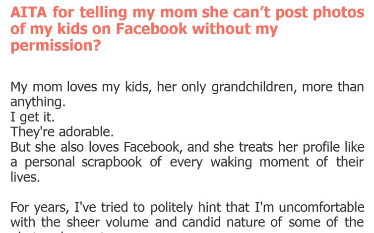 "AITA for telling my mom she can’t post photos of my kids on Facebook without my permission?"