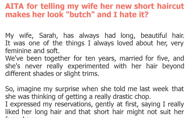 AITA for telling my wife her new short haircut makes her look “butch” and I hate it?
