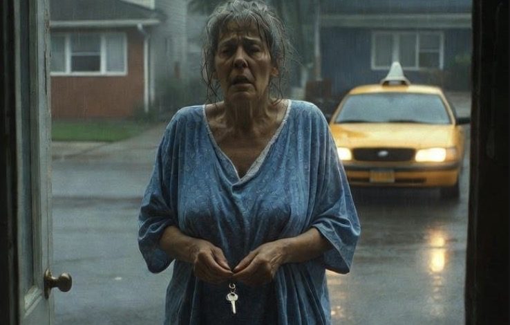The taxi driver slowed before driving off, glancing one last time in his mirror. An elderly woman stood on the sidewalk, leaning heavily on a cane, a small hospital bag resting near her feet. The cold autumn wind swept dead leaves around her shoes.