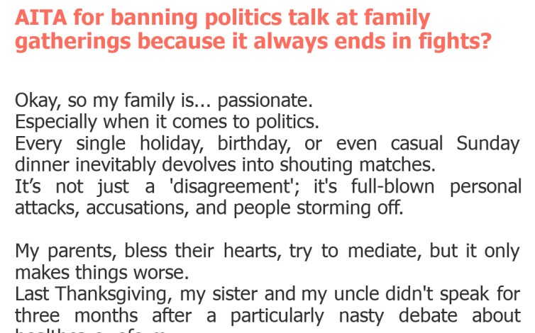 "AITA for banning politics talk at family gatherings because it always ends in fights?"