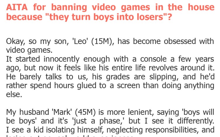 "AITA for banning video games in the house because "they turn boys into losers"?"