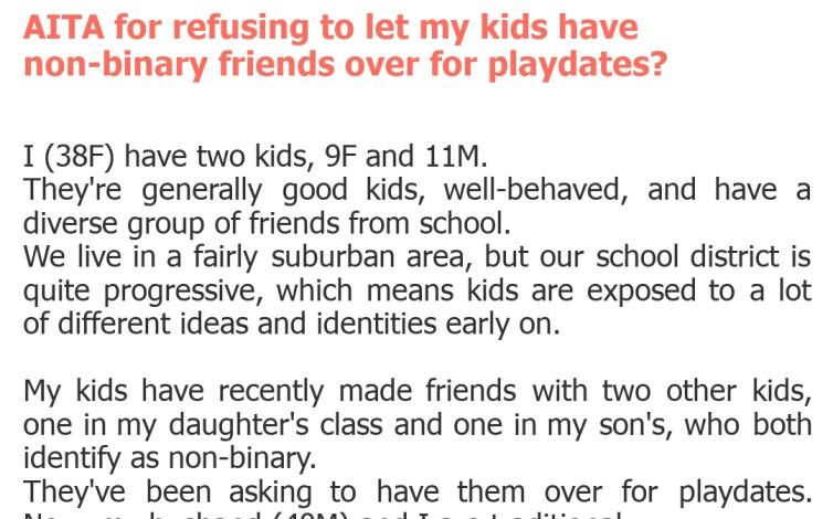 "AITA for refusing to let my kids have non-binary friends over for playdates?"