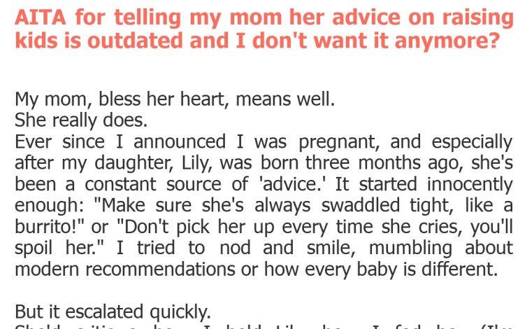 AITA for telling my mom her advice on raising kids is outdated and I don’t want it anymore?