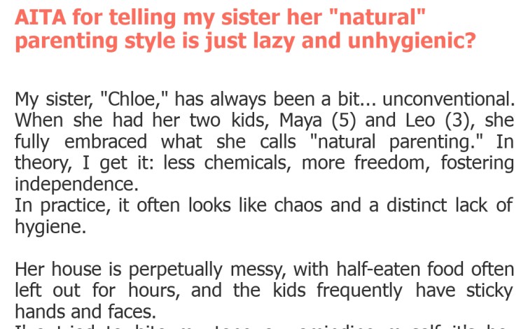 "AITA for telling my sister her "natural" parenting style is just lazy and unhygienic?"