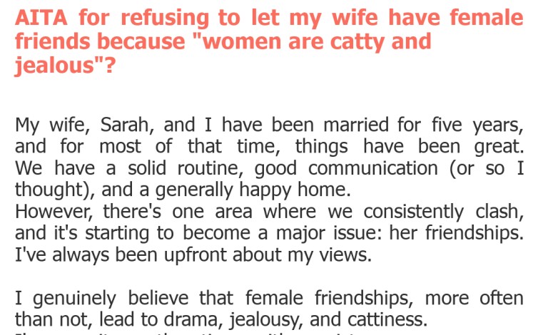 "AITA for refusing to let my wife have female friends because "women are catty and jealous"?"