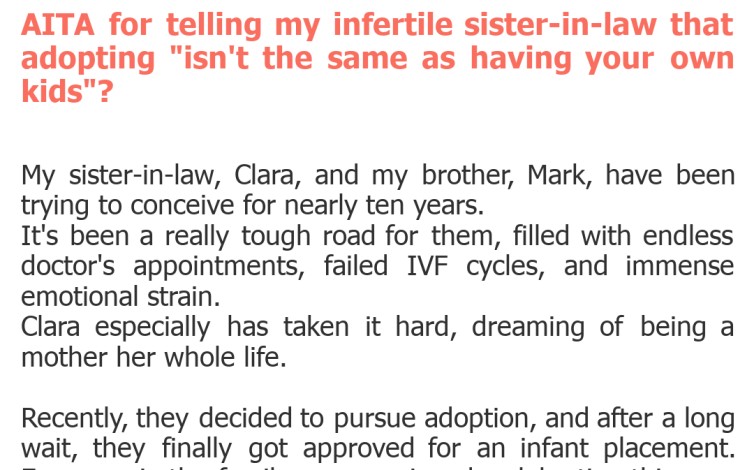 "AITA for telling my infertile sister-in-law that adopting "isn't the same as having your own kids"?"