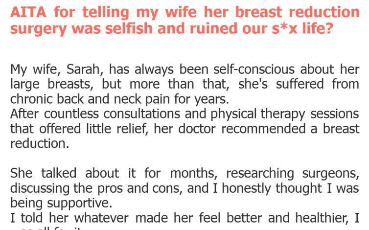 "AITA for telling my wife her breast reduction surgery was selfish and ruined our s*x life?"